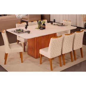 Sala de Jantar Completa Canes Tampo Madeirado c/ Vidro Curvo 200x100cm e 8 Cadeiras Stela Freijo/Off White - Ipe/Linho Neve - DJ Móveis Abaixo segue os produtos do KIT: Sala de Jantar Completa Canes Tampo Madeirado c/ Vidro Curvo 200x100cm e 8 Cadeiras Stela Freijo/Off White - Ipe/Linho Neve - DJ Móveis