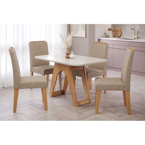 Sala de Jantar Completa Carol Tampo Madeirado c/ Vidro 130x80cm e 4 Cadeiras Nicole Nature-Madeirado/Off White-Linho Bege - Cimol Abaixo segue os produtos do KIT: Sala de Jantar Completa Carol Tampo Madeirado c/ Vidro 130x80cm e 4 Cadeiras Nicole Nature-Madeirado/Off White-Linho Bege - Cimol