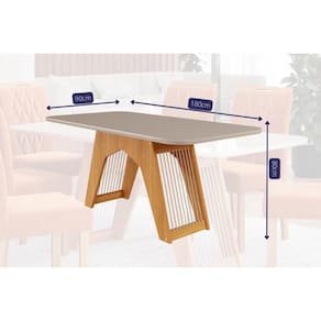 Mesa de Sala Jantar Carol + Tampo Madeirado Vidro 180x90cm Nature/Off White - Cimol