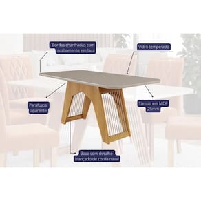 Conjunto: Mesa Sala Jantar Carol c/ Tampo Madeirado c/ Vidro 180cm + 6 Cadeiras Maia Nature/Off White/Gengibre - Cimol Abaixo segue os produtos do KIT: Conjunto: Mesa Sala Jantar Carol c/ Tampo Madeirado c/ Vidro 180cm + 6 Cadeiras Maia Nature/Off White/Gengibre - Cimol