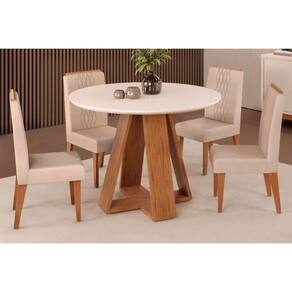 Sala De Jantar Completa Celeste Tampo Madeirado C/ Vidro Redondo 103x103cm E 4 Cadeiras Lia Freijo/off White - Suede Kraft - Dj Móveis