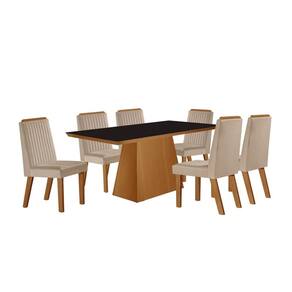 Sala de Jantar Completa com 6 Cadeiras 1,80x0,90m - Prada - LJ Móveis   O Conjunto de jantar em MDF 6 lugares Prada é moderno e lindo, com ele qualquer ambiente fica chique e prazeroso. As Cadeiras possuem encostos no formato anatômico e detalhe em MDF acima do encosto estofado. A Mesa conta com tampo de acabamento UV e vidro serigrafado / temperado de 4mm, que traz mais durabilidade para seu produto.   Faz parte do anúncio: 1 Mesa Prada 1,80x0,90m 6 Cadeiras Rivieira Obs. Objetos de decoração não inclusos   Particularidades da Mesa: Características: - Vidro Serigrafado Temperado 4mm; - Estrutura em MDF/MDP; - Mesa retangular; - Desing moderno;   Particularidades da Cadeira: Características: - Desing moderno; - Estrutura em MDF; - Base assento em MDP; - Suporta ate 120 kg distribuídos; - Espuma D20 para o assento e D18 para o encosto;   Dimensões da Mesa: Altura: 80 centímetros Largura: 1,80 metros Profundidade: 90 centímetros   Dimensões da Cadeira: Altura: 99 centímetros Largura: 43 centímetros Profundidade : 54,5 centímetros   Informações Importantes:.  - Produtos podem apresentar diferenças de tonalidades entre a foto na tela e o produto real, devido a calibração de cor de tela.  - Limpar com flanela ou pano macio. Não utilizar álcool. Não utilizar produtos abrasivos ou corrosivos. - Nós prezamos pela qualidade da entrega em primeiro lugar, trabalhamos com transportadoras altamente selecionadas e os melhores materiais de embalagem. - A montagem é de total responsabilidade do comprador. Antes de comprar, verifique o espaço disponível para a montagem. - Certifique-se de que o produto caiba em elevadores e vãos de escadas, não fazemos içamentos. Quaisquer despesas deste tipo ficam a cargo do cliente. - Garantia de 3 meses contra defeitos de fabricação.