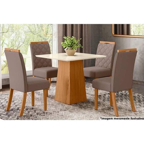 Sala de Jantar Completa Dora Tampo Madeirado 90cm e 4 Cadeiras Bella Nature/Veludo Light Marrom Amendoa - Henn Abaixo segue os produtos do KIT: Sala de Jantar Completa Dora Tampo Madeirado 90cm e 4 Cadeiras Bella Nature/Veludo Light Marrom Amendoa - Henn