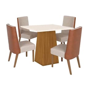 Sala de Jantar Completa Dora Tampo Madeirado 90x90cm e 4 Cadeiras Anne Nature/Courano/Linho - Henn Abaixo segue os produtos do KIT: Sala de Jantar Completa Dora Tampo Madeirado 90x90cm e 4 Cadeiras Anne Nature/Courano/Linho - Henn
