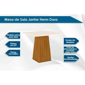 Mesa de Sala Jantar Dora c/ Tampo Madeirado 90x90cm Nature/Off White - Henn
