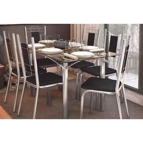 Sala de Jantar Completa Elba c/ Tampo de Vidro 80x150cm e 6 Cadeiras Florença Cromada - Preto - Kappesberg Abaixo segue os produtos do KIT: Sala de Jantar Completa Elba c/ Tampo de Vidro 80x150cm e 6 Cadeiras Florença Cromada - Preto - Kappesberg
