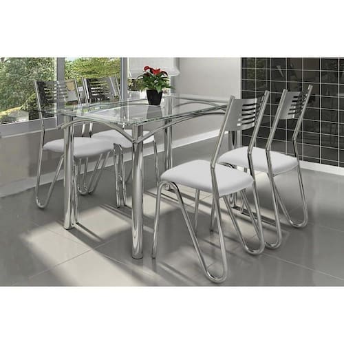 Sala De Jantar Completa Elba C/ Tampo Vidro 140cm + 4 Cadeiras Nápoles Cromado/branco - Kappesberg