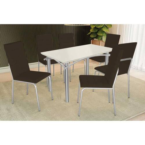 Sala de Jantar Completa Elba Tampo Madeirado c/ Vidro 120cm e 6 Cadeiras Amsterdã Cromada/Off White - Courano Marrom - Kappesberg