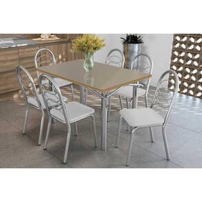 Sala de Jantar Completa Elba Tampo Madeirado c/ Vidro 120cm e 6 Cadeiras Holanda Cromada/Freijo Bronze - Courano Branco - Kappesberg