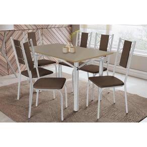 Sala de Jantar Completa Elba Tampo Madeirado c/ Vidro 120cm e 6 Cadeiras Lisboa Cromada/Freijo Bronze - Courano Marrom - Kappesberg Abaixo segue os produtos do KIT: Sala de Jantar Completa Elba Tampo Madeirado c/ Vidro 120cm e 6 Cadeiras Lisboa Cromada/Freijo Bronze - Courano Marrom - Kappesberg