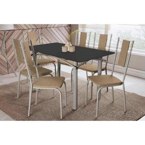 Sala de Jantar Completa Elba Tampo Madeirado c/ Vidro 160cm e 6 Cadeiras Lisboa Niquel/Preto - Courano Capuccino - Kappesberg Abaixo segue os produtos do KIT: Sala de Jantar Completa Elba Tampo Madeirado c/ Vidro 160cm e 6 Cadeiras Lisboa Niquel/Preto - Courano Capuccino - Kappesberg