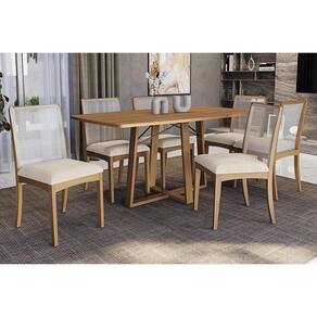 Sala de Jantar Completa Elma Premium Madeira Maciça c/ Tampo Madeirado 170x90cm e 6 Cadeiras Lara Carvalho/Canela - Linho Bege Argila - Kappesberg Abaixo segue os produtos do KIT: Sala de Jantar Completa Elma Premium Madeira Maciça c/ Tampo Madeirado 170x90cm e 6 Cadeiras Lara Carvalho/Canela - Linho Bege Argila - Kappesberg
