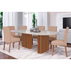 Sala de Jantar Completa Ester Tampo Madeirado Oval c/ Vidro 210x100cm e 6 Cadeiras Maia Cinamomo/Off White - Nature/Suede Gengibre Bege - Cimol Abaixo segue os produtos do KIT: Sala de Jantar Completa Ester Tampo Madeirado Oval c/ Vidro 210x100cm e 6 Cadeiras Maia Cinamomo/Off White - Nature/Suede Gengibre Bege - Cimol