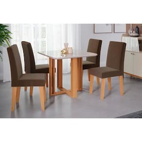 Sala de Jantar Completa Flora c/ Tampo Madeirado c/ Vidro 95x95cm e 4 Cadeiras Milena Nature/Suede Joli Chocolate - Cimol