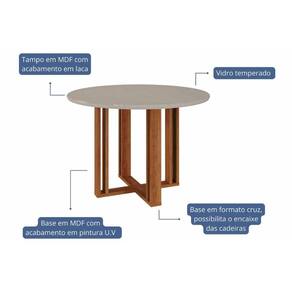 Mesa de Sala Jantar Flora c/ Tampo Madeirado c/ Vidro 109X109cm Cinamomo/Off White - Cimol