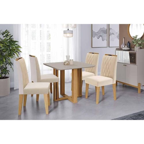 Sala de Jantar Completa Flora Tampo Madeirado c/ Vidro 95x95cm e 4 Cadeiras Juliana Cinamomo/Off White - Carvalho/Suede Nude Bege - Cimol Abaixo segue os produtos do KIT: Sala de Jantar Completa Flora Tampo Madeirado c/ Vidro 95x95cm e 4 Cadeiras Juliana Cinamomo/Off White - Carvalho/Suede Nude Bege - Cimol