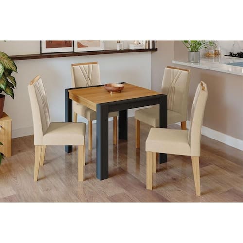 Sala de Jantar Completa Grace Tampo Madeirado 90x90cm e 4 Cadeiras Nicole Nature-Madeirado/Suede Nude - Cimol Abaixo segue os produtos do KIT: Sala de Jantar Completa Grace Tampo Madeirado 90x90cm e 4 Cadeiras Nicole Nature-Madeirado/Suede Nude - Cimol