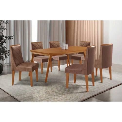 Sala de Jantar Completa Havana c/ Tampo Madeirado Canto Curvo 180x90cm e 6 Cadeiras Pietá Naturale - Corano Capuccino - Rufato Abaixo segue os produtos do KIT: Sala de Jantar Completa Havana c/ Tampo Madeirado Canto Curvo 180x90cm e 6 Cadeiras Pietá Naturale - Corano Capuccino - Rufato