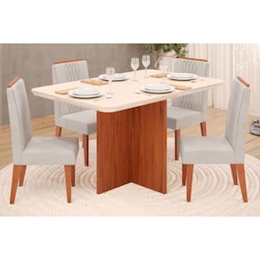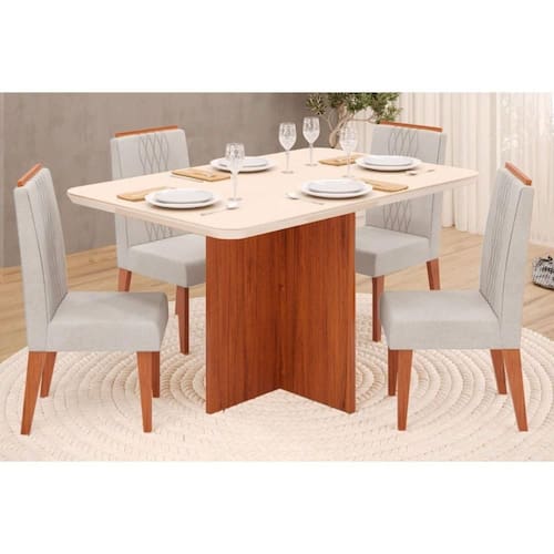 Sala de Jantar Completa Hera c/ Tampo Madeirado c/ Vidro 120x90cm e 4 Cadeiras Lia Freijo/Linho Neve - DJ Móveis Abaixo segue os produtos do KIT: Sala de Jantar Completa Hera c/ Tampo Madeirado c/ Vidro 120x90cm e 4 Cadeiras Lia Freijo/Linho Neve - DJ Móveis