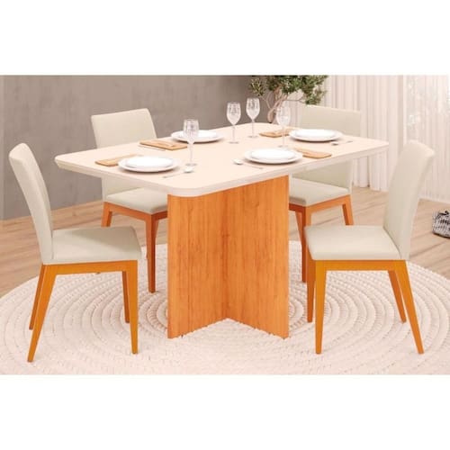 Sala de Jantar Completa Hera Tampo Madeirado c/ Vidro 120x90cm e 4 Cadeiras Vitória Cedro/Off White - Ipe/Linho Neve - DJ Móveis Abaixo segue os produtos do KIT: Sala de Jantar Completa Hera Tampo Madeirado c/ Vidro 120x90cm e 4 Cadeiras Vitória Cedro/Off White - Ipe/Linho Neve - DJ Móveis