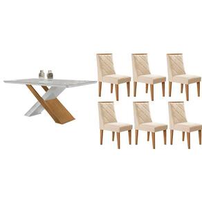 Sala de Jantar Completa Imperatriz c/ Tampo Madeirado c/ Vidro Canto Curvo 180X90cm e 6 Cadeiras Pietá Naturale/Off White - Suede Creme - Rufato Abaixo segue os produtos do KIT: Sala de Jantar Completa Imperatriz c/ Tampo Madeirado c/ Vidro Canto Curvo 180X90cm e 6 Cadeiras Pietá Naturale/Off White - Suede Creme - Rufato