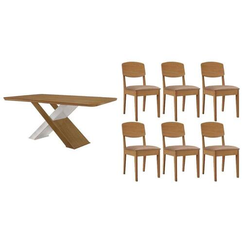 Sala de Jantar Completa Imperatriz c/ Tampo Madeirado Canto Curvo 180x90cm e 6 Cadeiras Havana Naturale/Off White - Linho Capuccino - Rufato - Sala de Jantar Completa Rufato com 6 Cadeiras