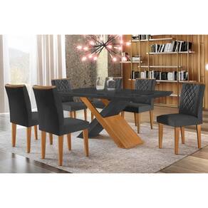 Abaixo segue os produtos do KIT: Sala de Jantar Completa Imperatriz Tampo Madeirado c/ Vidro Canto Curvo 180x90 e 6 Cadeiras Jade Imbuia/Grafite - Linho Grafite - Rufato