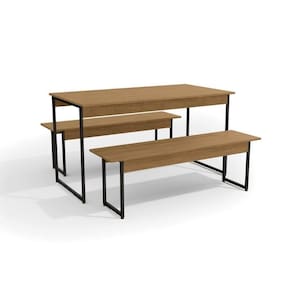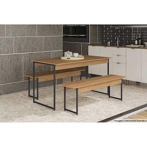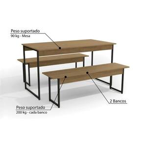 Conjunto: Mesa Sala Jantar Industrial LI013 Easy c/ Tampo Madeirado + 2 Bancos Freijo/Preto - Kappesberg
