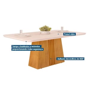 Mesa de Sala Jantar Italia c/ Tampo Madeirado c/ Vidro Curvo 170x90cm Freijó/Off White - DJ Móveis