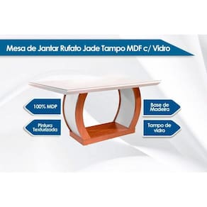 Mesa de Sala Jantar Jade + Tampo Madeirado Vidro Reto 180x90cm Imbuia/Off White - Rufato