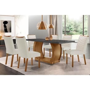 Abaixo segue os produtos do KIT: Sala de Jantar Completa Jade Tampo Madeirado c/ Vidro Canto Curvo 180x90 e 6 Cadeiras Londrina Imbuia/Grafite - Suede Creme - Rufato