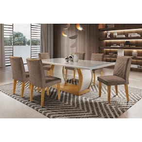Sala de Jantar Completa Jade Tampo Madeirado c/ Vidro Canto Reto 180x90cm e 6 Cadeiras Jade Capuccino/Suede Capuccino - Rufato Abaixo segue os produtos do KIT: Sala de Jantar Completa Jade Tampo Madeirado c/ Vidro Canto Reto 180x90cm e 6 Cadeiras Jade Capuccino/Suede Capuccino - Rufato