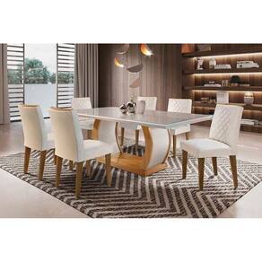 Sala de Jantar Completa Jade Tampo Madeirado c/ Vidro Reto 180x90 e 6 Cadeiras Jade Imbuia - Veludo Creme - Rufato