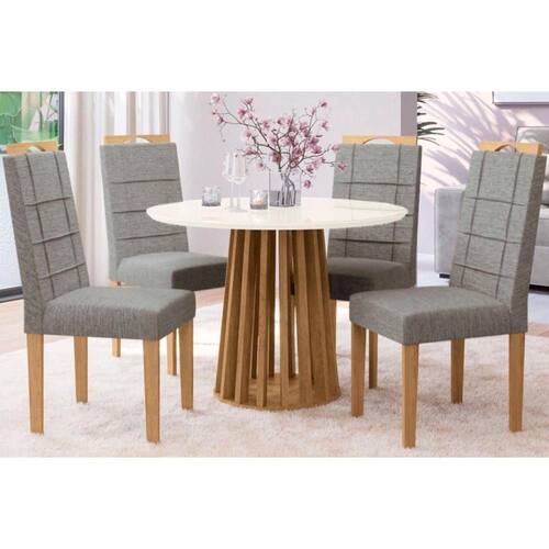 Sala de Jantar Completa Lavanda Tampo Madeirado c/ Vidro 105x105cm e 4 Cadeiras 2CAD150 Nogueira/Off White/Vidro Off White - Eucalipto - Kappesberg - Blush