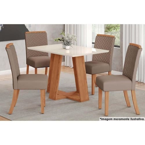 Sala de Jantar Completa Lins Tampo Reto Madeirado c/Vidro 120x80cm e 4 Cadeiras Malu Nature/Marrom Amêndoa - Henn Abaixo segue os produtos do KIT: Sala de Jantar Completa Lins Tampo Reto Madeirado c/Vidro 120x80cm e 4 Cadeiras Malu Nature/Marrom Amêndoa - Henn