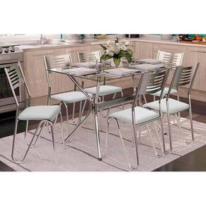 Sala De Jantar Completa Loire C/ Tampo Vidro 120cm + 6 Cadeiras Nápoles Cromado/courano Branco - Kappesberg