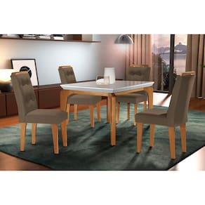 Sala de Jantar Completa Londrina c/ Tampo Madeirado c/ Vidro Canto Curvo 120x80cm e 4 cadeiras Imperatriz Imbuia/Grafite - Suede Capuccino - Rufato