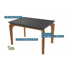 Mesa de Sala Jantar Londrina c/ Tampo 180x90cm Madeirado Vidro Canto Curvo - Imbuia/Off White - Rufato