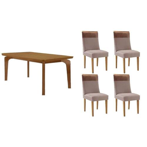 Sala de Jantar Completa Londrina c/ Tampo Madeirado Canto Curvo 120x80cm e 4 Cadeiras Jaspe Naturale - Linho Capuccino - Rufato Abaixo segue os produtos do KIT: Sala de Jantar Completa Londrina c/ Tampo Madeirado Canto Curvo 120x80cm e 4 Cadeiras Jaspe Naturale - Linho Capuccino - Rufato