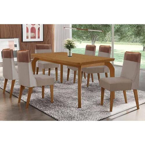 Sala de Jantar Completa Londrina c/ Tampo Madeirado Canto Curvo 180x90cm e 6 Cadeiras Jaspe Naturale - Suede Capuccino - Rufato Abaixo segue os produtos do KIT: Sala de Jantar Completa Londrina c/ Tampo Madeirado Canto Curvo 180x90cm e 6 Cadeiras Jaspe Naturale - Suede Capuccino - Rufato