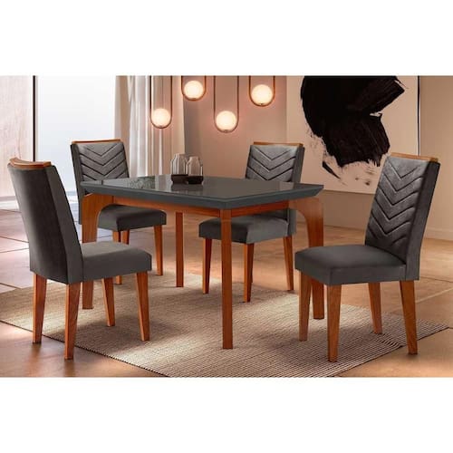 Sala de Jantar Completa Londrina c/ Tampo Madeirado Vidro Canto Curvo 120x80cm e 4 cadeiras Londrina Imbuia/Grafite - Linho Grafite - Rufato