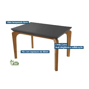 Mesa de Sala Jantar Londrina c/Tampo Madeirado Vidro Canto Curvo 120x80cm Grafite/Imbuia/Vidro Grafite - Rufato