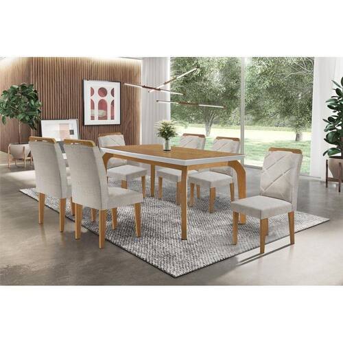 Sala de Jantar Completa Londrina Tampo Madeirado c/ Vidro 180cm + 6 Cadeiras Melissa Imbuia/Bege - Rufato Abaixo segue os produtos do KIT: Sala de Jantar Completa Londrina Tampo Madeirado c/ Vidro 180cm + 6 Cadeiras Melissa Imbuia/Bege - Rufato
