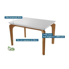Mesa de Sala Jantar Londrina c/ Tampo 120x80cm Madeirado Vidro Canto Curvo - Imbuia/Off White - Rufato