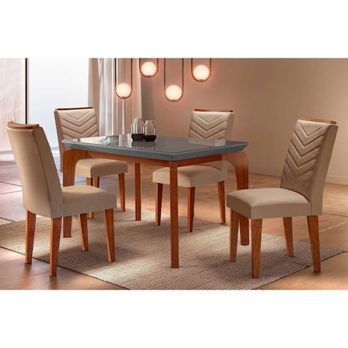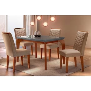 Sala de Jantar Completa Londrina Tampo Madeirado c/ Vidro Curvo 120x80 e 4 Cadeiras Londrina Imbuia/Veludo Capuccino - Rufato