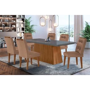 Sala de Jantar Completa Luna c/ Tampo de Vidro Canto Curvo 180x90cm e 6 cadeiras Imperatriz Imbuia/Grafite - Suede Capuccino - Rufato - Blush