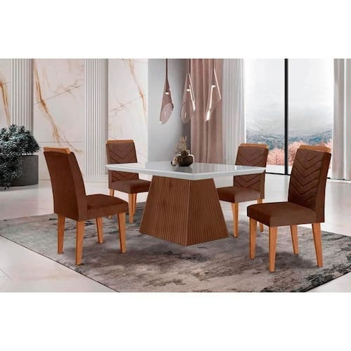 Cadeira Sala de Jantar Londrina Kit 2 Un Madeira Capuccino/Suede Marrom - Rufato