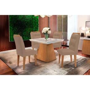 Sala de Jantar Completa Luna c/ Tampo Madeirado Vidro Canto Curvo 90x90cm e 4 cadeiras Imperatriz Imbuia/Off White - Suede Capuccino - Rufato