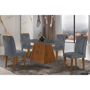 Sala De Jantar Completa Luna Tampo Madeirado C/ Vidro Curvo 120x80 E 4 Cadeiras Amsterdã Imbuia - Veludo Grafite - Rufato