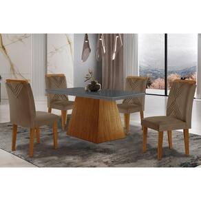 Sala de Jantar Completa Luna Tampo Madeirado c/ Vidro Reto 120x80 e 4 Cadeiras Amsterdã Imbuia - Veludo Capuccino - Rufato
